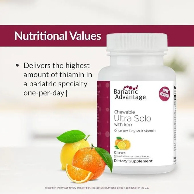 • Key Nutrients: Specially crafted for bariatric procedure recovery, Chewable Ultra Solo with Iron includes all essential vitamins and minerals such as vitamin A and vitamin B12