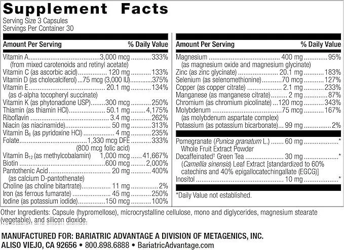 - Specialized Bariatric Multivitamin: Designed for bariatric procedure recovery, Ultra Multi with Iron delivers at least 200% DV of 13 key nutrients and 100% DV of other essential nutrients