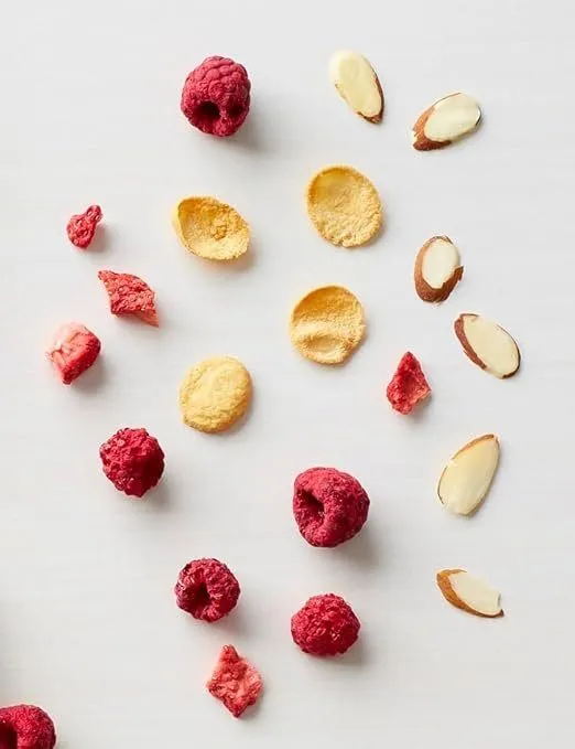 • Wholesome ingredients give this high protein cereal tons of amazing flavor. Made with real strawberries, raspberries and almonds for a sweet taste flavor you'll savor. The craveable combo of berries, almonds and sweet, crunchy flakes make this scrumptious breakfast cereal a hit with the whole family.